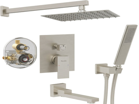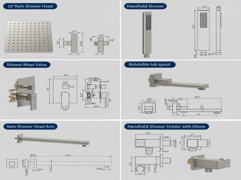 Included Components 10 Inch Rain Shower Head, Handheld shower and Long Tub Faucet