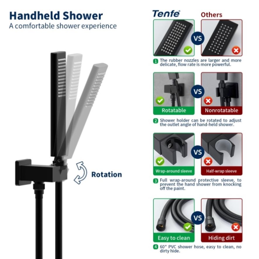 Male NPT Waterfall Shower head with Handheld, Matte Black Bathtub Shower Faucet with High Flow Wall 02156252