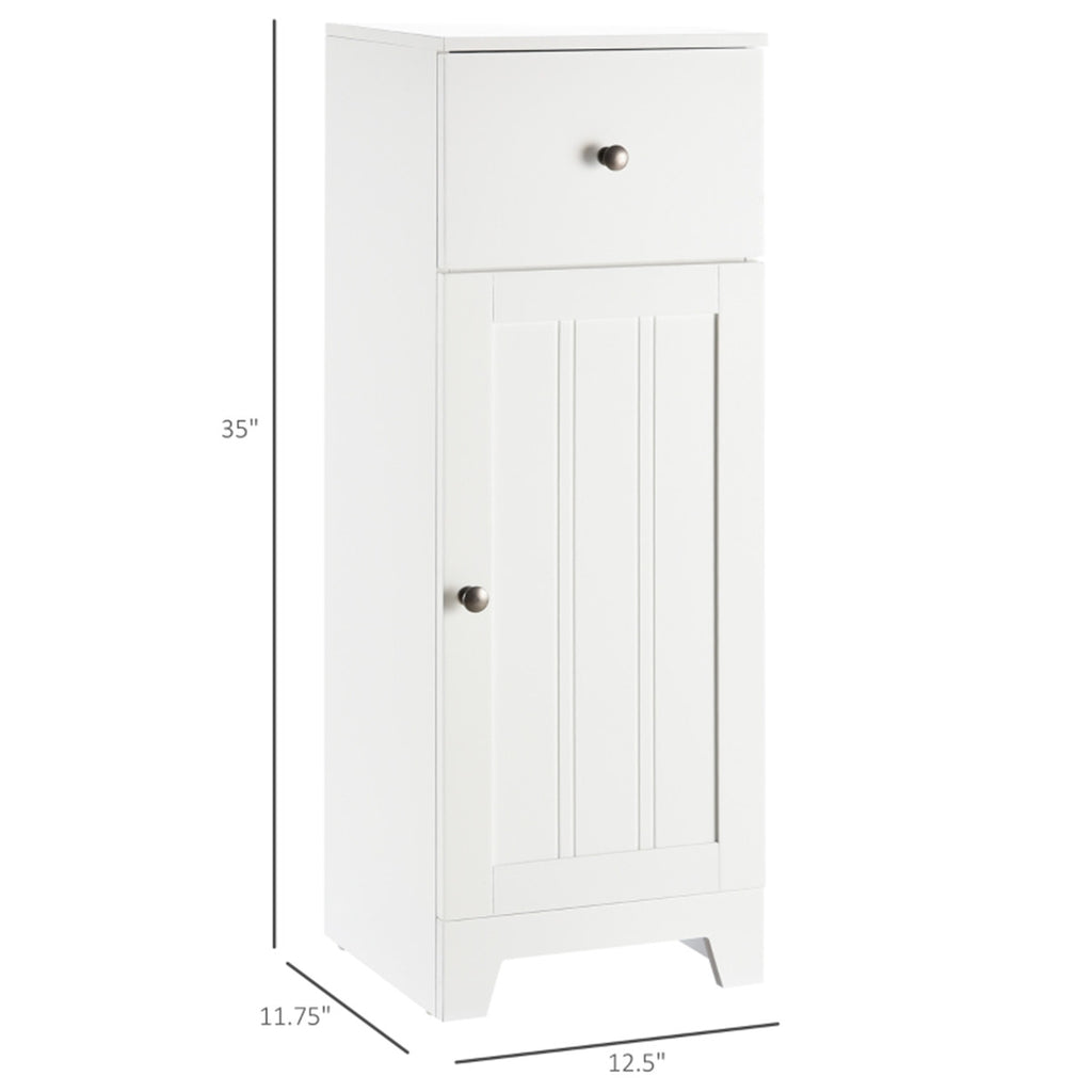 - - A door cabinet and a drawer, provide ample room to store toilet paper, shampoo, etc.