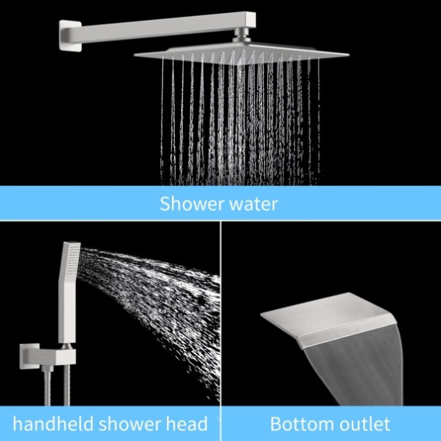 Rain Shower System Matte Black Tub Shower Faucet Set 10 Inch Square Rainfall Shower Head with T3177P269100