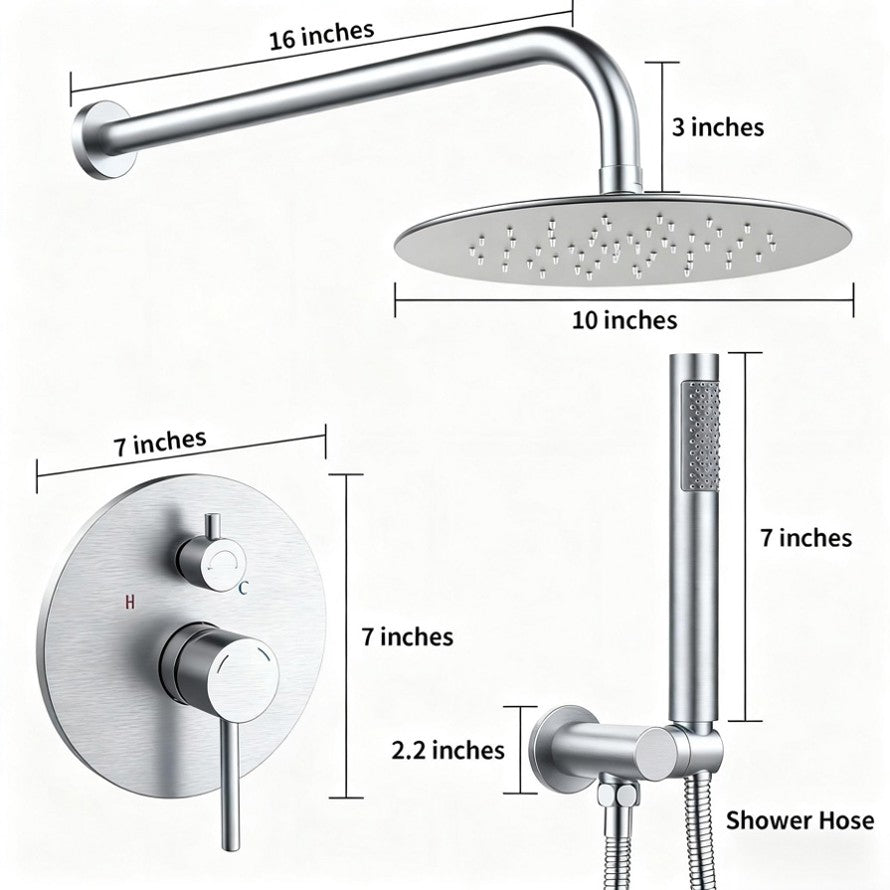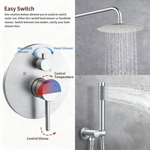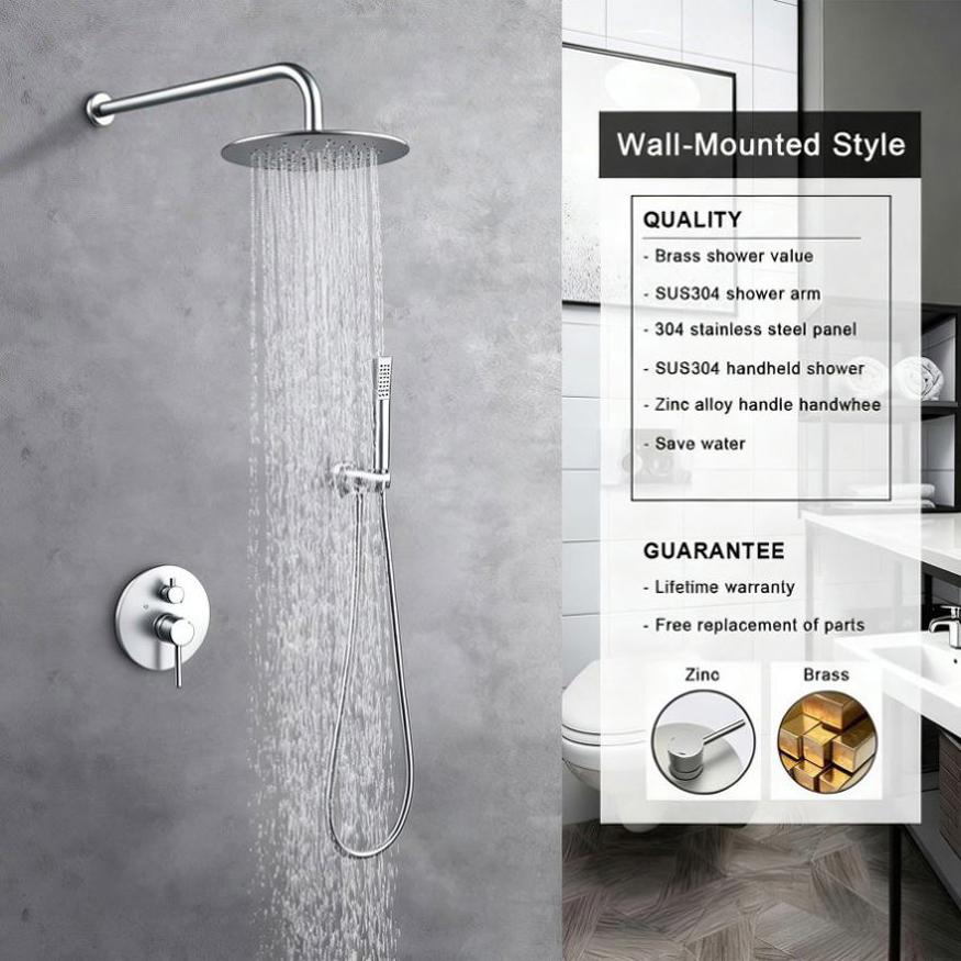 1. Includes: L Style Brass Handheld Shower Head,10 Inch304 Stainless Steel Rain Shower Head and Solid Brass Shower Mixer Valve