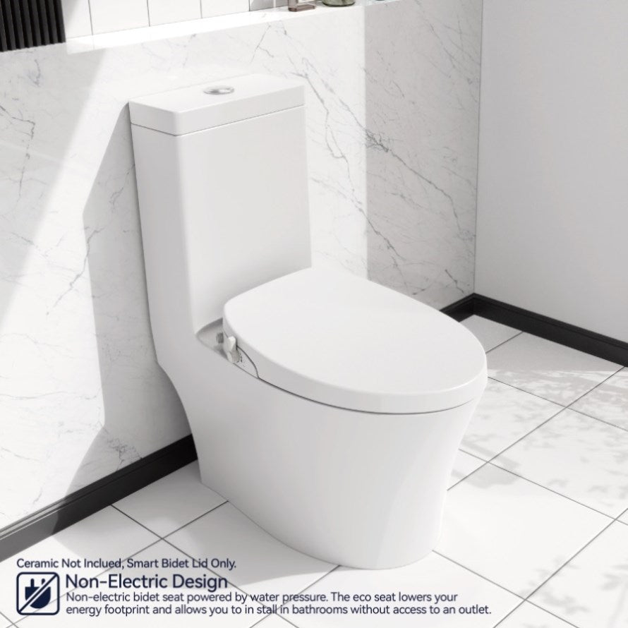 Non-Electric Design: Non-electric bidet seat powered by water pressure. The eco seat lowers your energy footprint and allows you to in stall in bathrooms without access to an outlet.