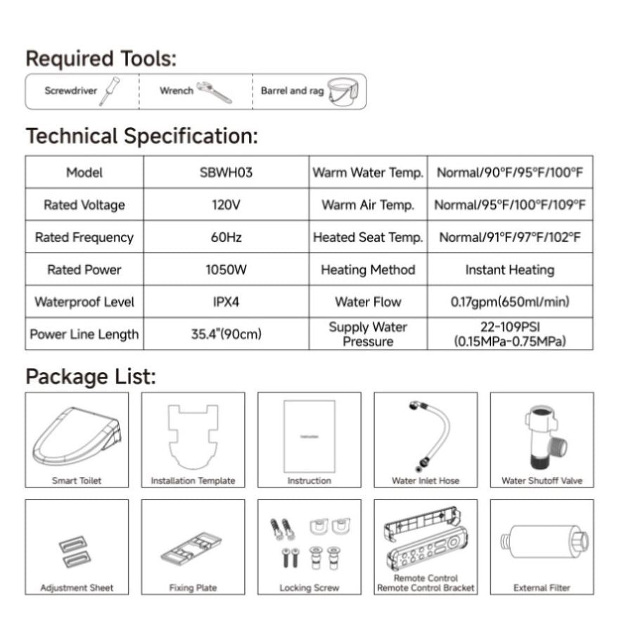 Self-Cleaning Nozzle: Self-cleaning function activated after user sitting on the smart toilet.Anti-bacterial coating ensuring optimal hygiene.