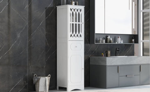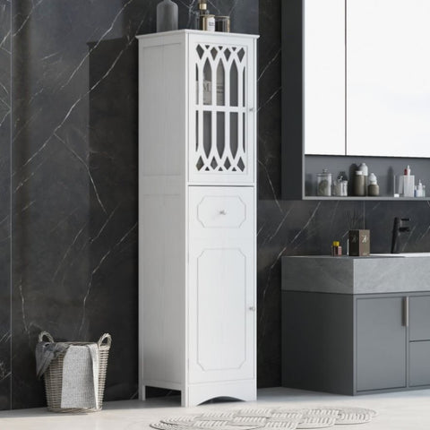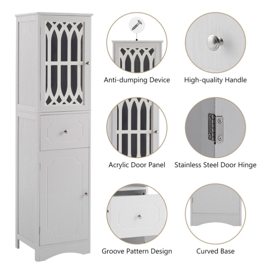 Tall Bathroom Cabinet, Freestanding Storage Cabinet with Drawer and Doors, MDF Board, Acrylic Door, WF289427AAK