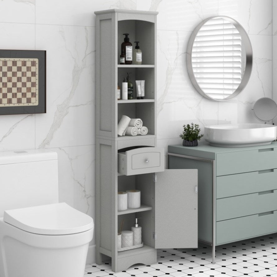 [Space Saver]: With a slim and compact body, this cabinet will not occupy much room. Just put it in a corner and then you can get a space-saving bathroom furniture. This cabinet also equips with an anti-tip kit so can to protect it from tipping.