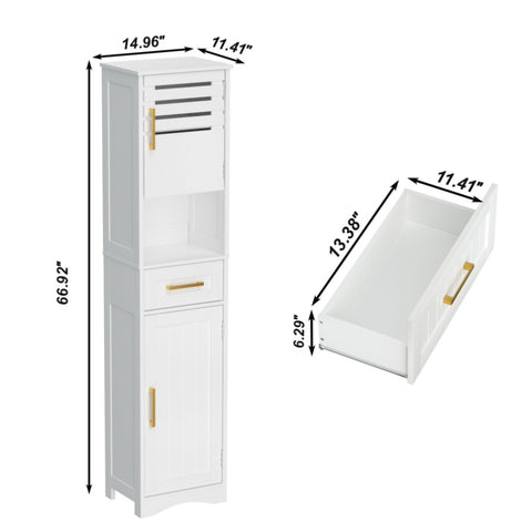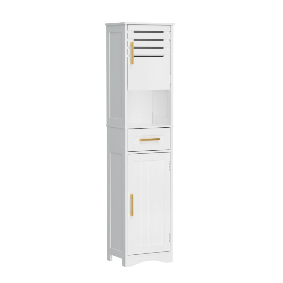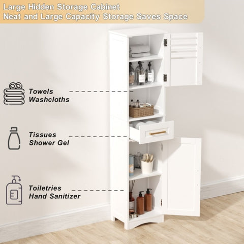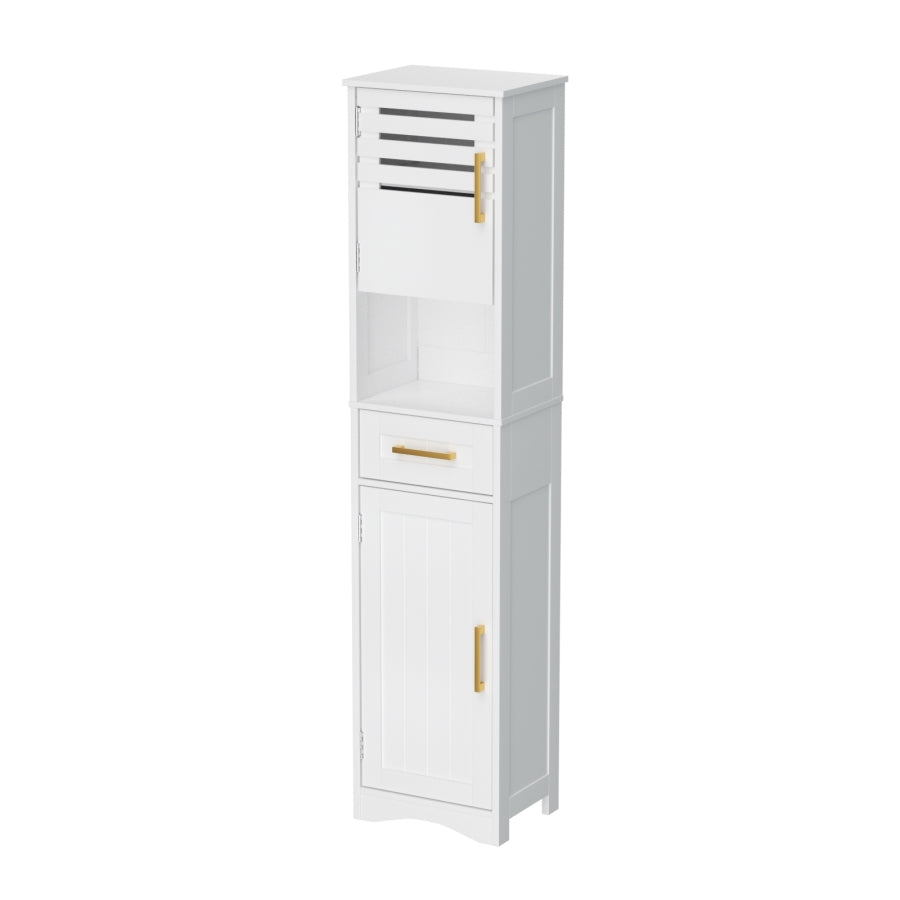 Tall Bathroom Floor Cabinet,Narrow Slim Freestanding Cabinet with 1 Drawer and 2 Doors T3210P293446