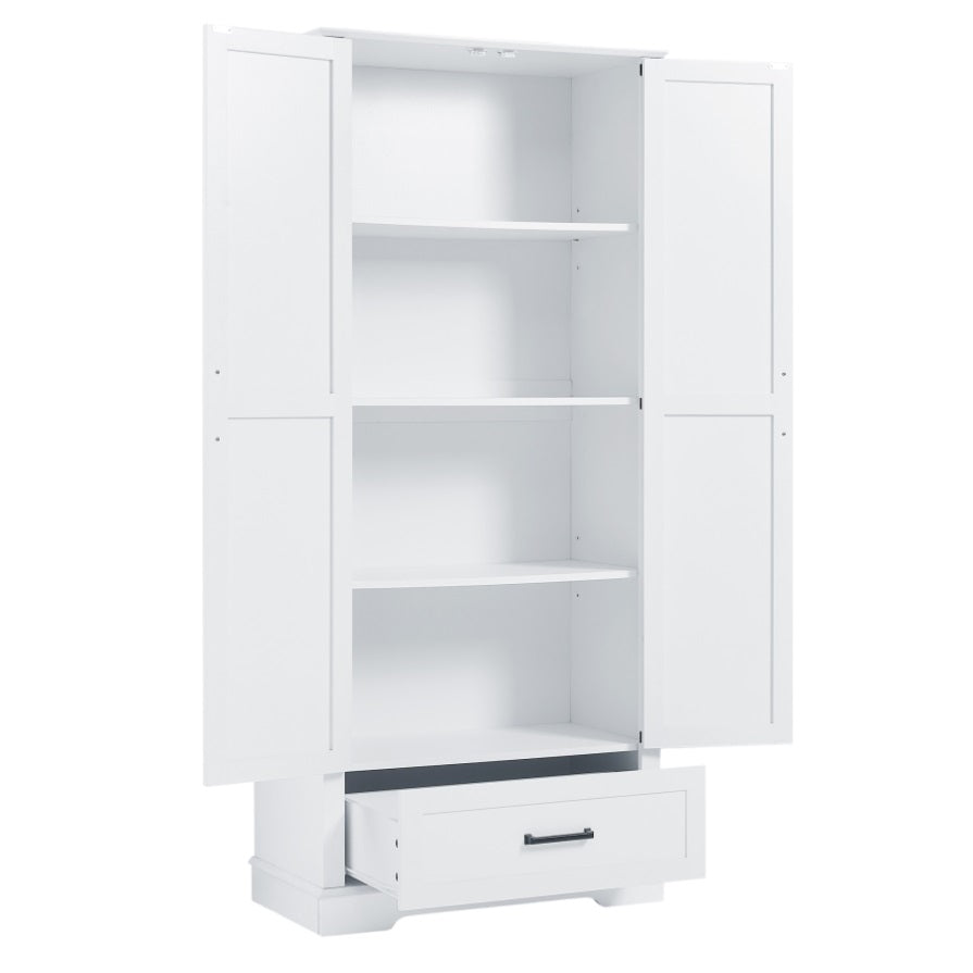 Tall Bathroom Storage Cabinet, Cabinet with Two Doors and One Drawer, Adjustable Shelf, MDF Board, 54458299