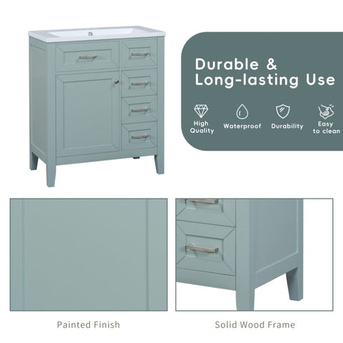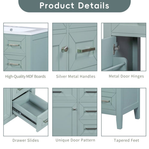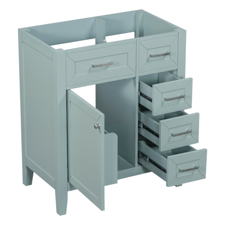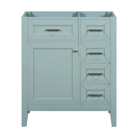 Stylish 30" Bathroom Vanity Base Only: This 30" bathroom vanity is suitable for bathroom in any decoration style. Freestanding green vanity cabinet with silver handles complies with your bathroom facilities. The groove design on the door and drawer increases the artistry and aesthetics of the home environment. If you're looking for a simple but stylish bathroom sink vanity, our product will be a great choice to upgrade your bathroom.