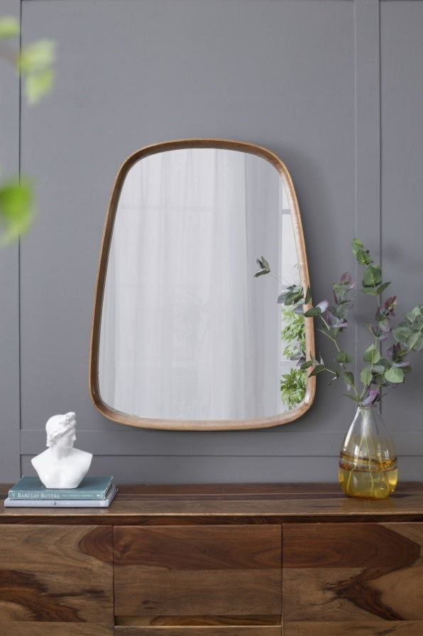 The sleek and classic lines of the Wayne Wood Mirror create a perfect addition for your design. Featuring a light wood frame, this mirror creates a brightening effect to the space, while keeping a minimalist design. The sleek design of the mirror plays well in any space, either displayed above a sideboard of a mid-century dining room or hung above the mantle, it is sure to complete any room.