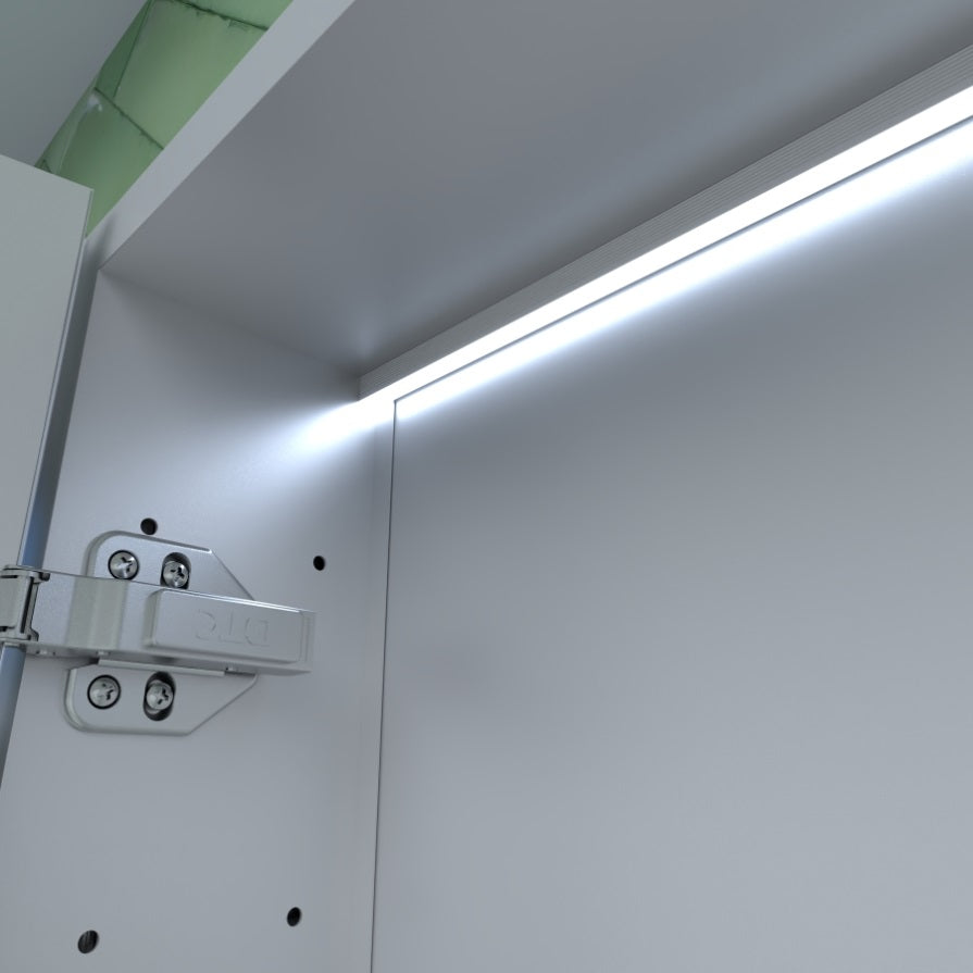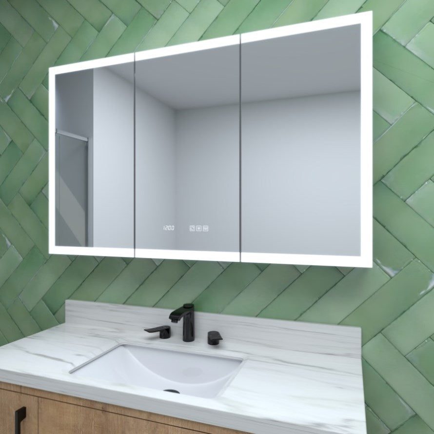 Recessed or surface mount, high-definition mirror and integrated LED.