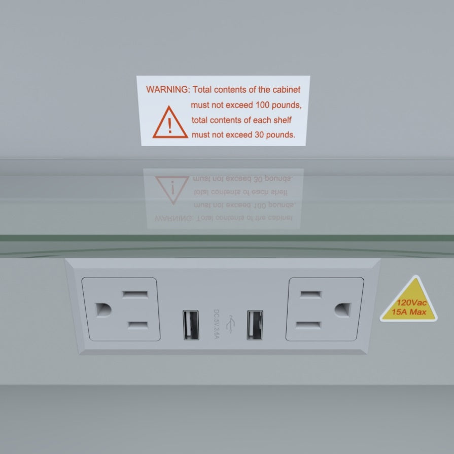 6.Features inside auto-sensing top light, charging stations(outlet and USB ports), and all mirrors inside.