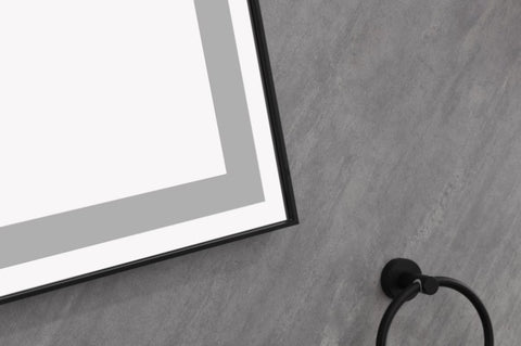 Rectangular Backlit Black Frame Lighted LED Mirror Anti-Fog Wall Mounted Bathroom Vanity Mirror with Lights Large Dimmable Makeup Mirror Home Decor Mirror(Horizontal/Vertical) ECO-FRIENDLY & LONG LIFE OF USE---Copper-free silver mirror with LED lifetime of 50,000 plus hours. The mirror meets standards set by Americans with ETL. Contemporary design light up the whole bathroom with a luxury look that match any bathroom and most vanity.The mirror's night light has a light sensor switch and can also be stopped manually, you do not have to worry about finding the light switch in total LIGHT ADJUSTABLE & ACCURATELY REFLECTION---Color Temperature 3000K(warm)-6500K(cool) switch by a simply tap the touch button. CRI ≥90 and high lumen light will give you 35% more remarkable clarity vs a conventional mirror. ANTI-FOG & ENERGY-SAVING---Defogger turns on automatically ensures the mirror stays clear and fog-free.The anti-fog switch is separate control ensure safe and energy-saving. ANTI-EXPLOSION GLASS & SAFER FOR BATHROOM---The glass of this mirror use anti-explosion glass the whole mirror keeps adhesive state even the glass burst, provide best protection.All electrical parts of the mirror are ETL Listed and IP54 rating ensures safe lighting in humid bathroom environments.Multi-layers of protection provide extra waterproof and quality confidence