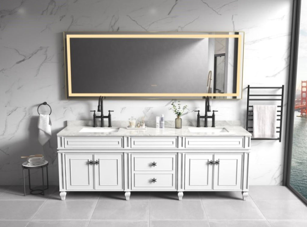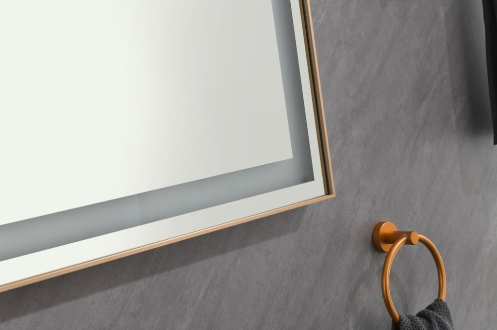 ECO-FRIENDLY & LONG LIFE OF USE---Copper-free silver mirror with LED lifetime of 50,000 plus hours. The mirror meets standards set by Americans with ETL. Contemporary design light up the whole bathroom with a luxury look that match any bathroom and most vanity.The mirror's night light has a light sensor switch and can also be stopped manually, you do not have to worry about finding the light switch in total