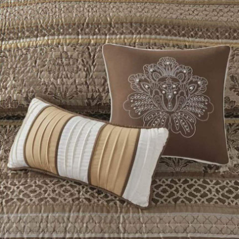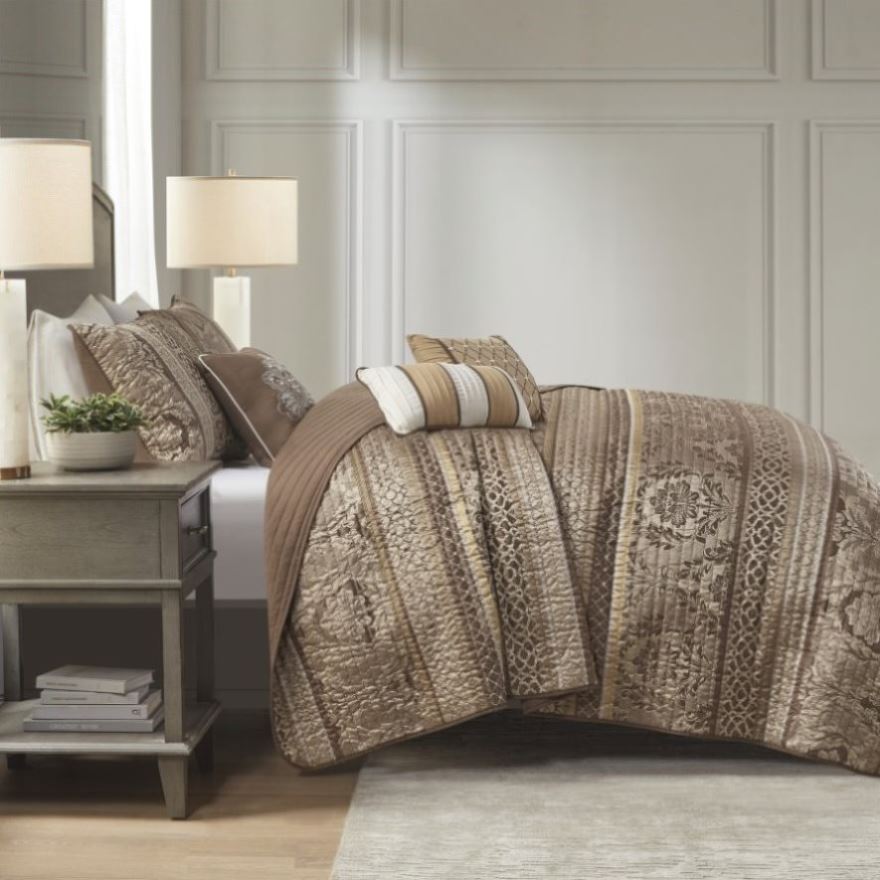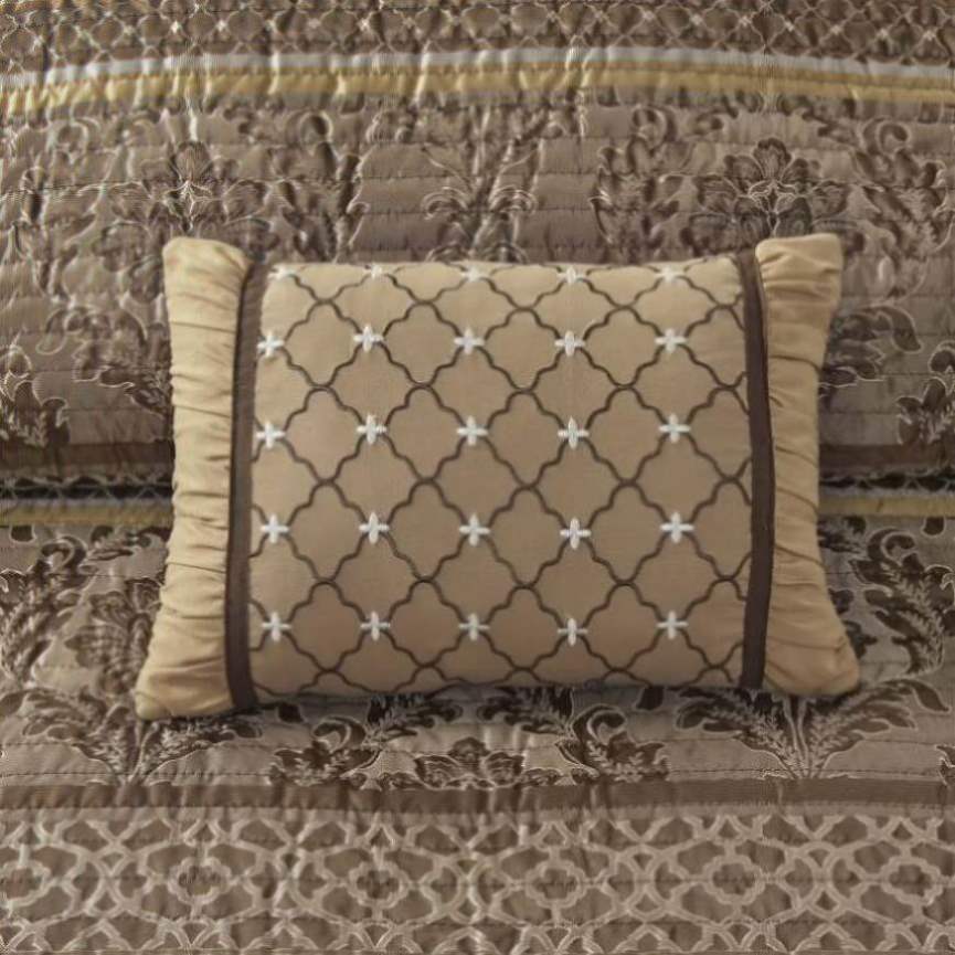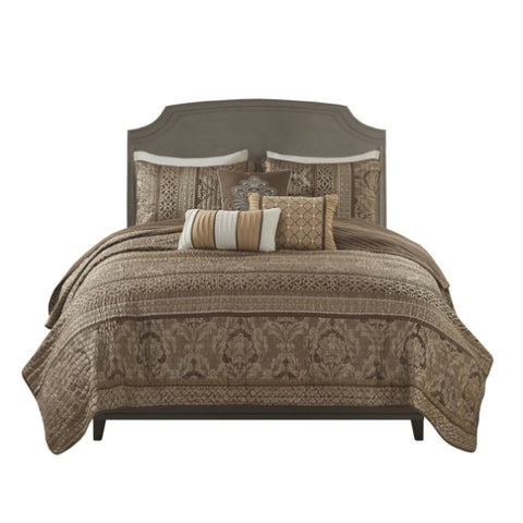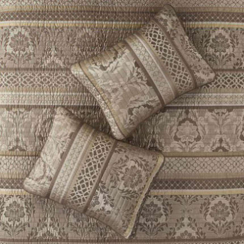 6 Piece Jacquard Quilt Set with Throw Pillows Brown/Gold Full/Queen B03597482