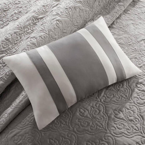 The Attingham 7 Piece Reversible quilt set is set in a black, ivory and grey, all working together to create this beautiful neutral colorway. The black and grey portions of the quilt have an intricate woven design that add dimension to this quilt. Made from 100% polyester, this quilt will keep be easy to care for and keep you cozy all year round.