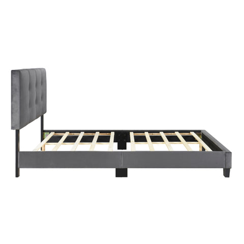 1pc Full Platform Bed Dark Gray Velvet Upholstered Adjustable Height Headboard Button Tufted Solid B011P203578