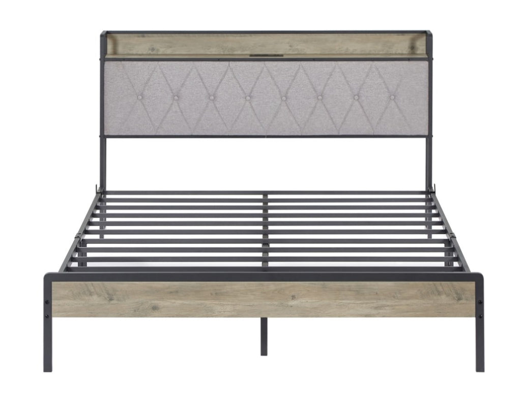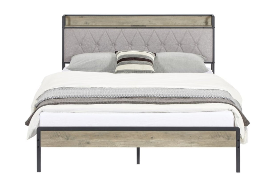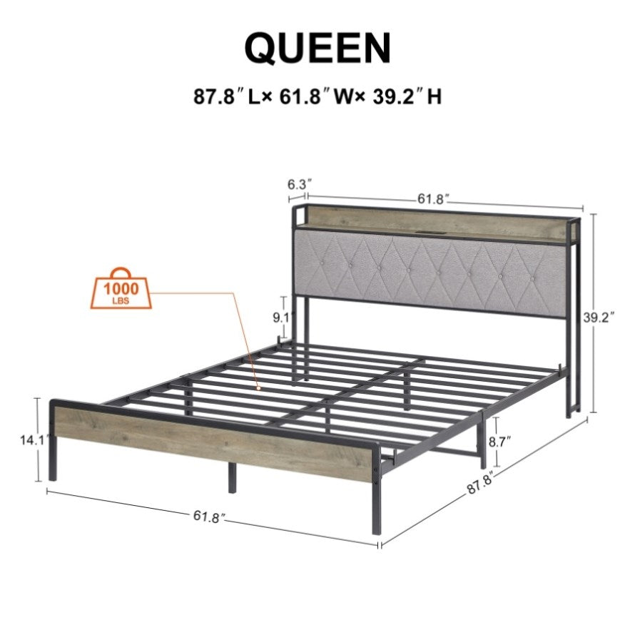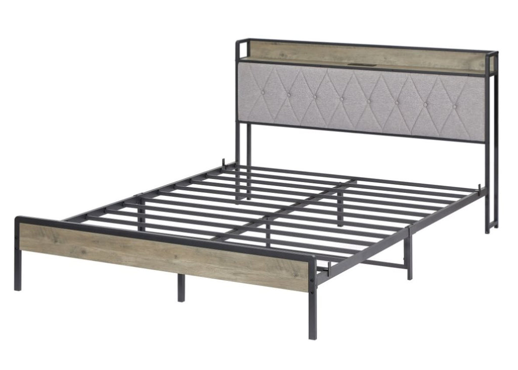 Bed frame with charging station Queen size,Grey, 87.8'' L x 61.8'' W x 39.2'' H. W1162123746