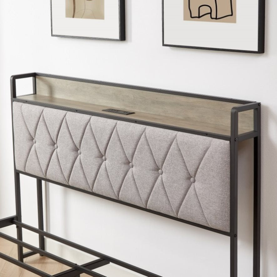The 2-tier storage headboard design provides you with storage space equivalent to a simple nightstand, keeping the room tidy and more cost-effective