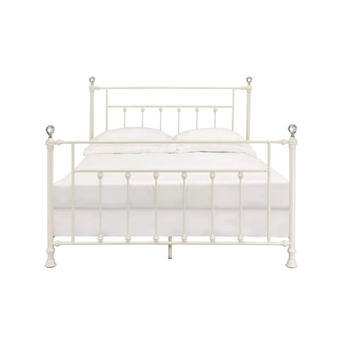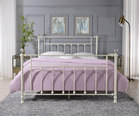 Elegant Spindle Design with Crystal Accents: Features a spindle-style headboard and footboard adorned with crystal trim for a luxurious and sophisticated touch.