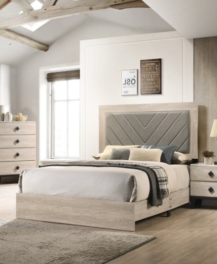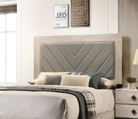 Contemporary 1pc Cream Finish California King Size Bed Bedroom Furniture Gray V-Design Headboard B011P236816