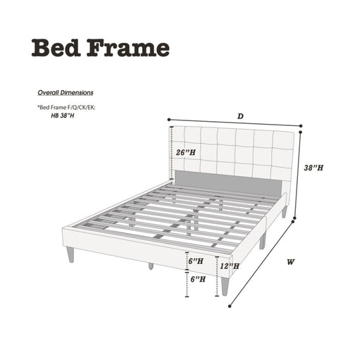 Exceptional craftsmanship of color and shapes makes this bedframe fit nicely in a contemporary resting place. Featuring square shaped tufting, this bed also includes a slat support for the mattress. Available in grey and charcoal.