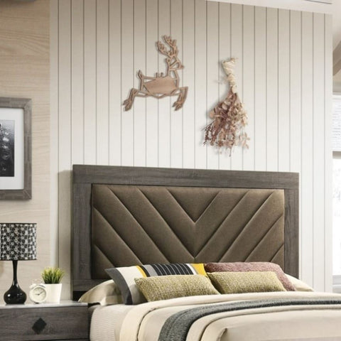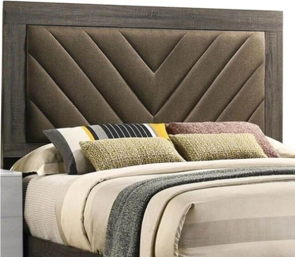 Contemporary 1pc Queen Size Bed Bedroom Furniture Upholstered Headboard Rubberwood 1pc Bedframe Gray B011P236803