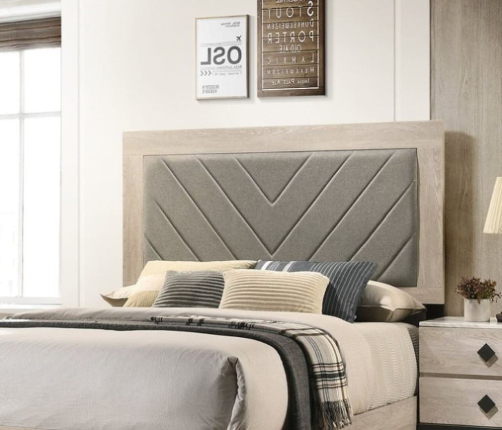 Contemporary Cream Finish Queen Size Bed Bedroom Furniture Gray V-Design Headboard Rubberwood B011P236815