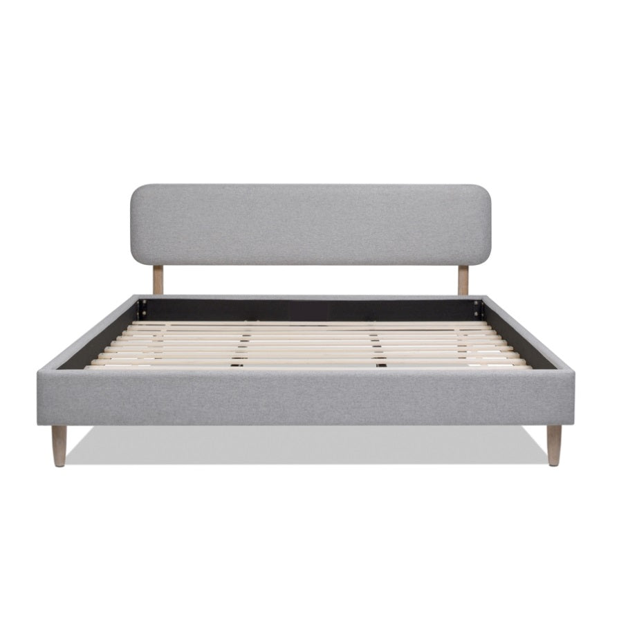 Diego Low Upholstered Platform Bed, King, Light Grey Polyester B2719P238662