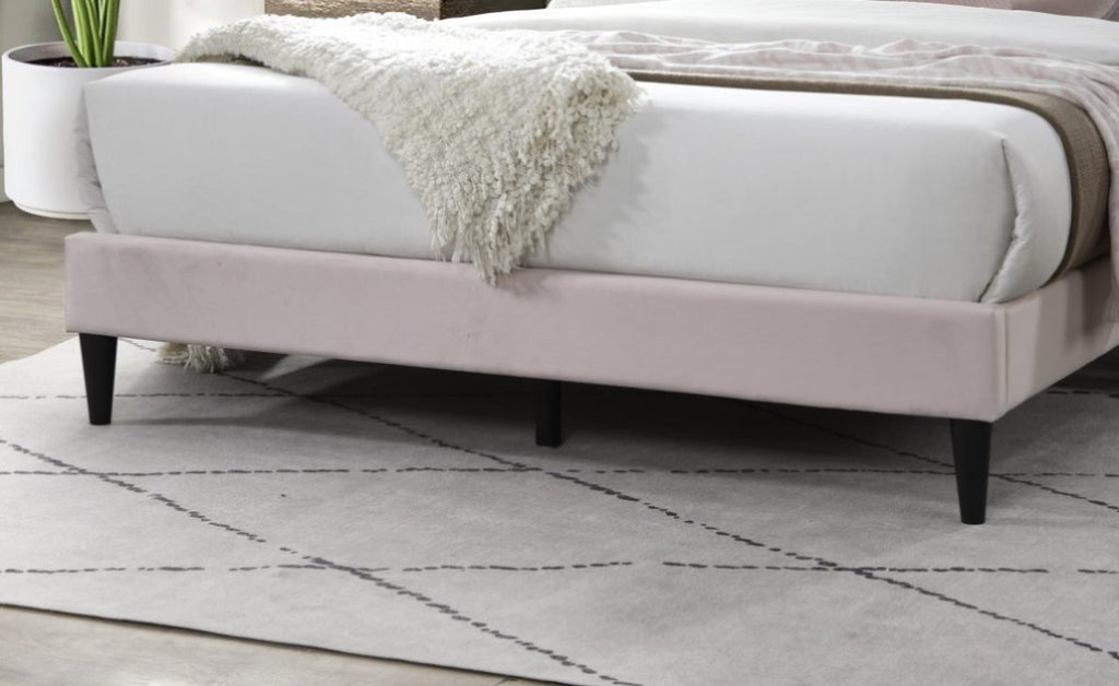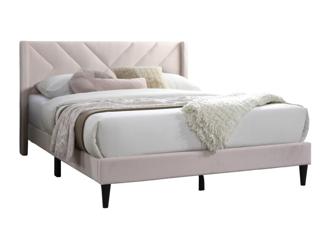 Elegant Modern Light Pink Velvet Upholstered Queen Size Bed Clean Lines Design Headboard 1pc B011P238935