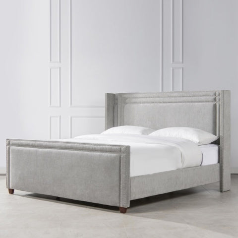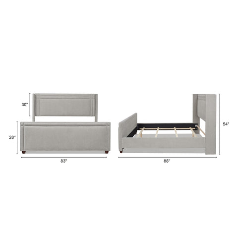 Elle Wingback Upholstered King Bed, Silver Grey Polyester B2719P245936