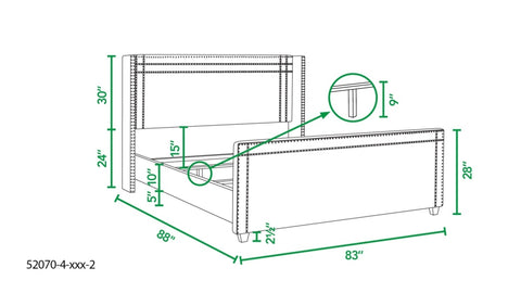 Bed set includes headboard, footboard, side rails, support slats, hardware and hex key tool