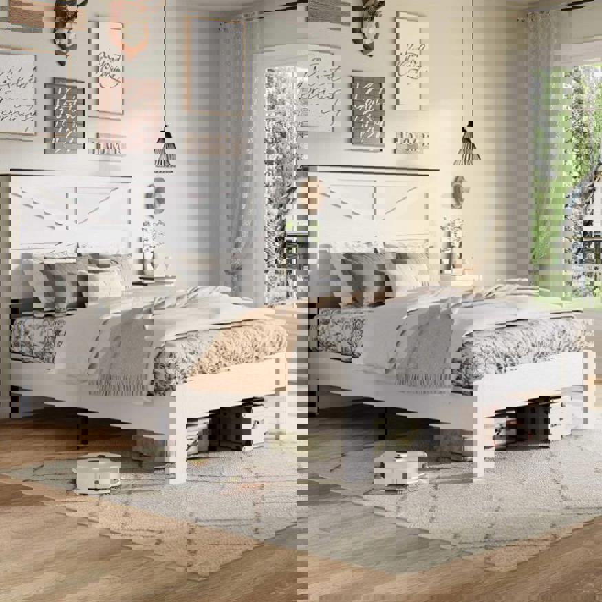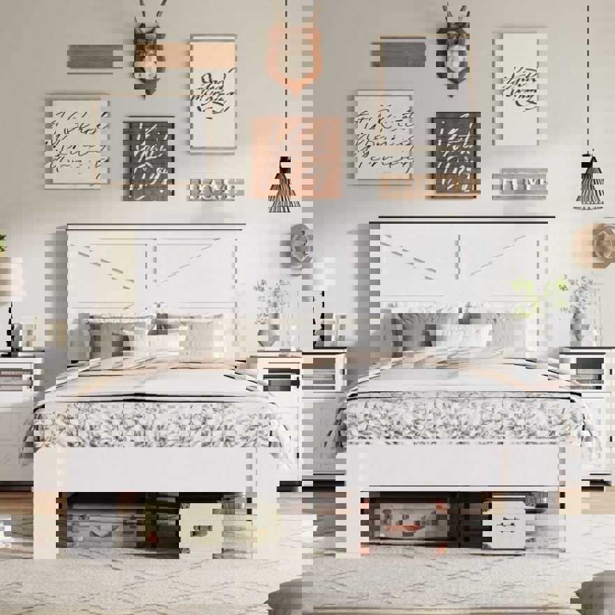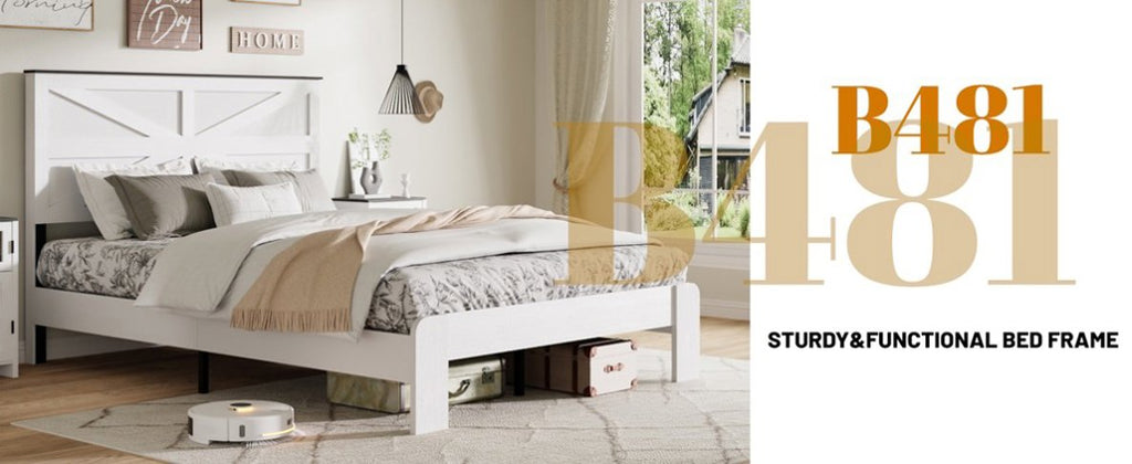 Full Bed Frame Headboard , Wood Platform Bed Frame , Noise Free,No Box Spring Needed and Easy W636P305736