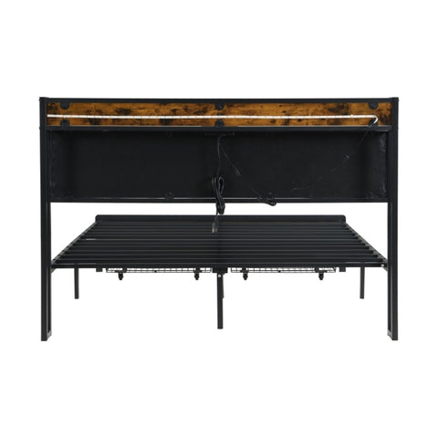 Bed Frame with led lighting,with remote control,Storage Headboard with Charging Station