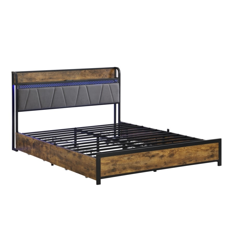 Full Size Bed Frame, Storage Headboard with Charging Station and 4 Storage Drawers,LED Lights , W311P187977