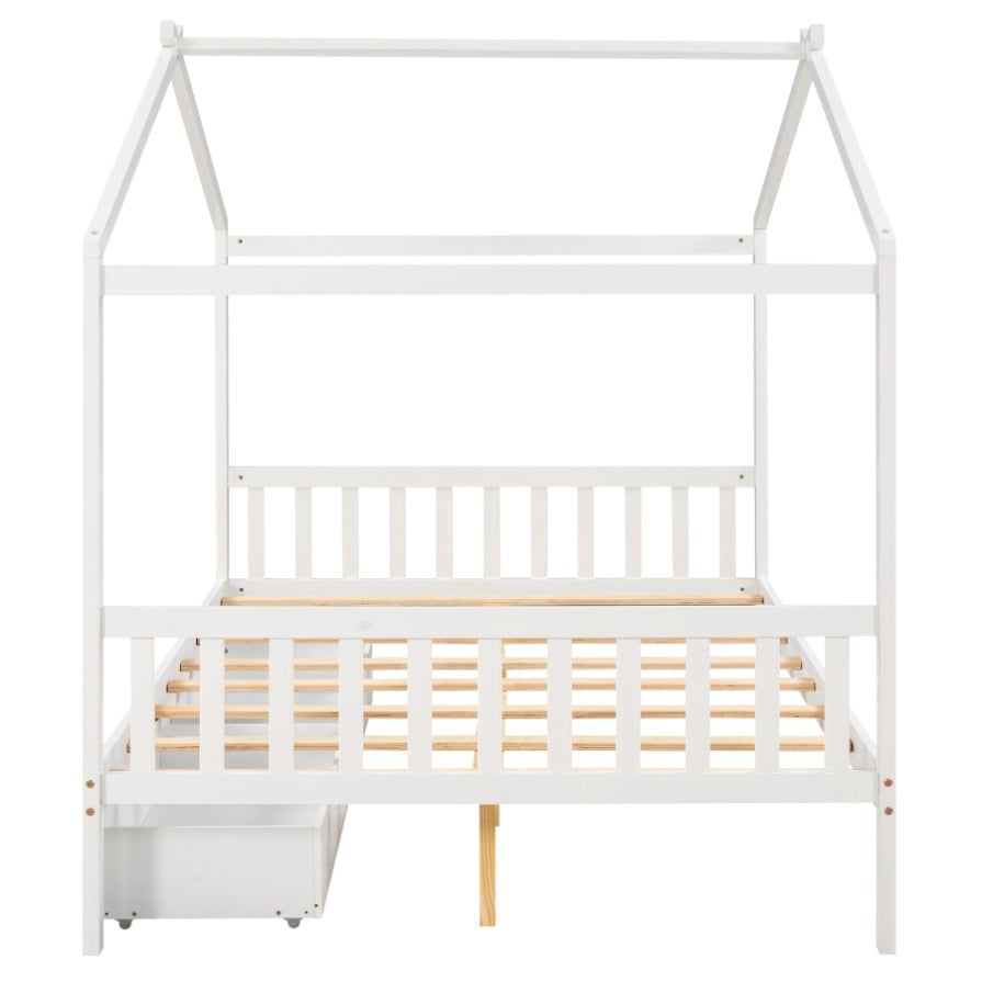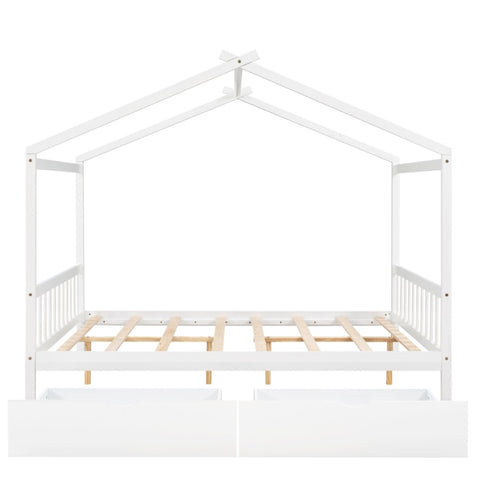 Full Size House Platform Bed with Two Drawers,Headboard and Footboard,Roof Design,White