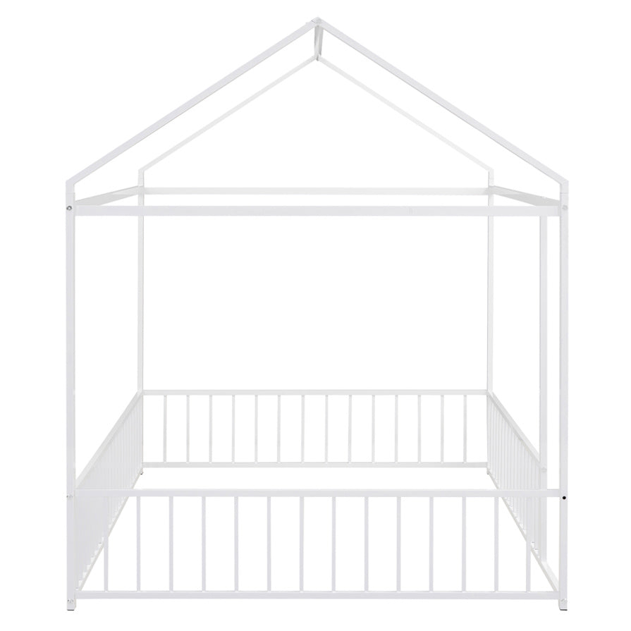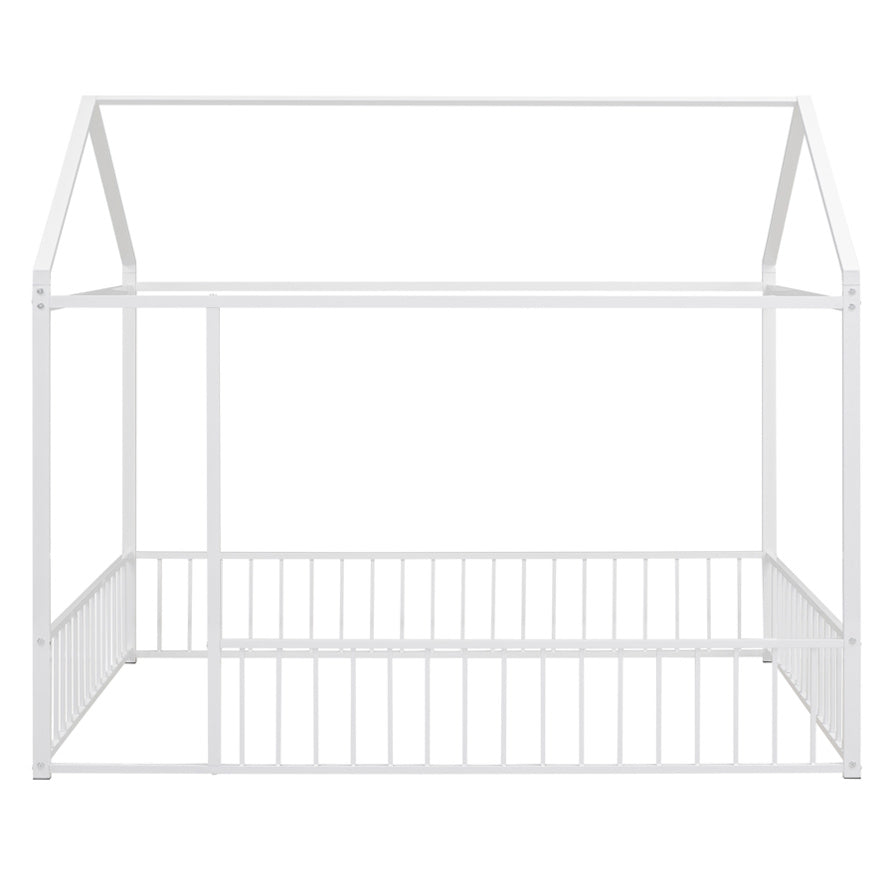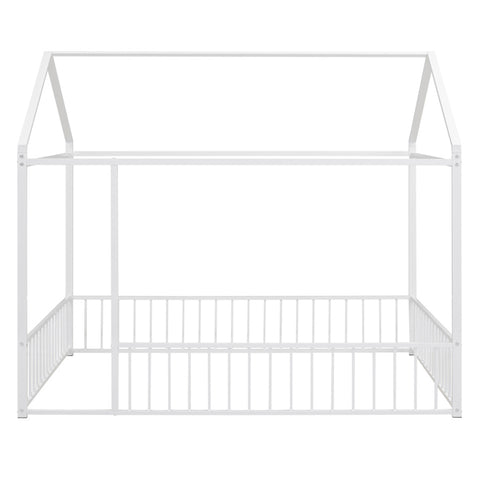 Full Size Metal Bed House Bed Frame with Fence, for Kids, Teens, Girls, Boys,White MF304787AAK