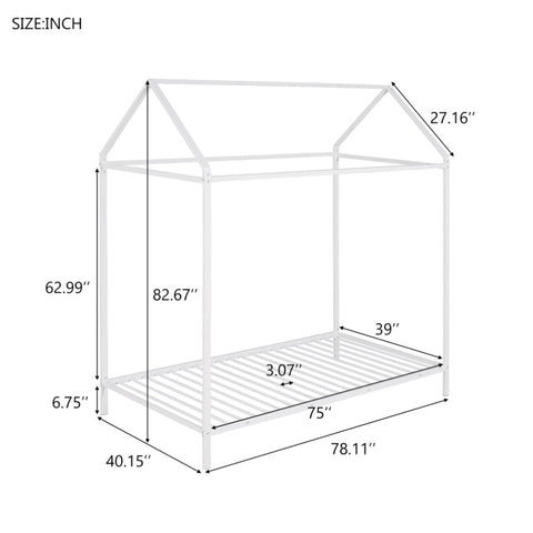 House Bed Frame Twin Size , Kids Bed Frame Metal Platform Bed Floor Bed for Kids Boys Girls No Box WF286771AAK