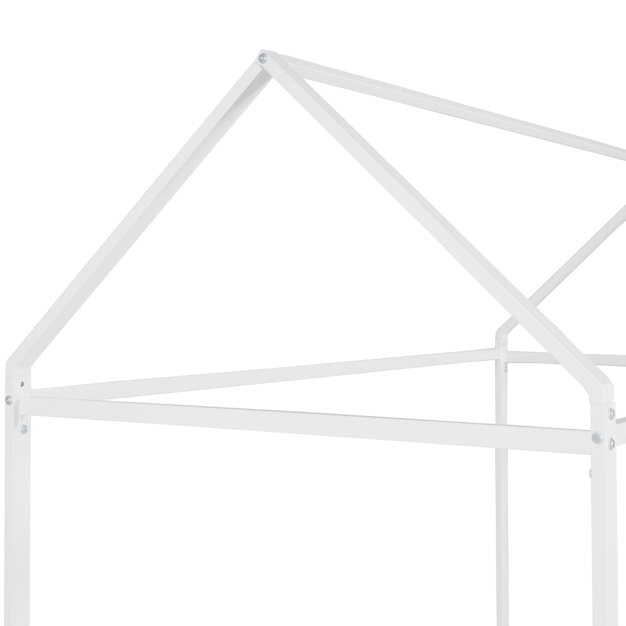This super cool house bed is ideal for your family. You can create a cool bedroom hideaway and allow your child's imagination to take flight. You can decorate it according to your child's personality due to its versatile and simple framework like drape fabric, wind fairy lights, or attach toys. This Kids metal house bed is also perfect as a reading nook or a playhouse . This bed frame is made of Metal, making it exceedingly sturdy and durable. with stable slat let the bed frame Weight capacity reach 350LBS