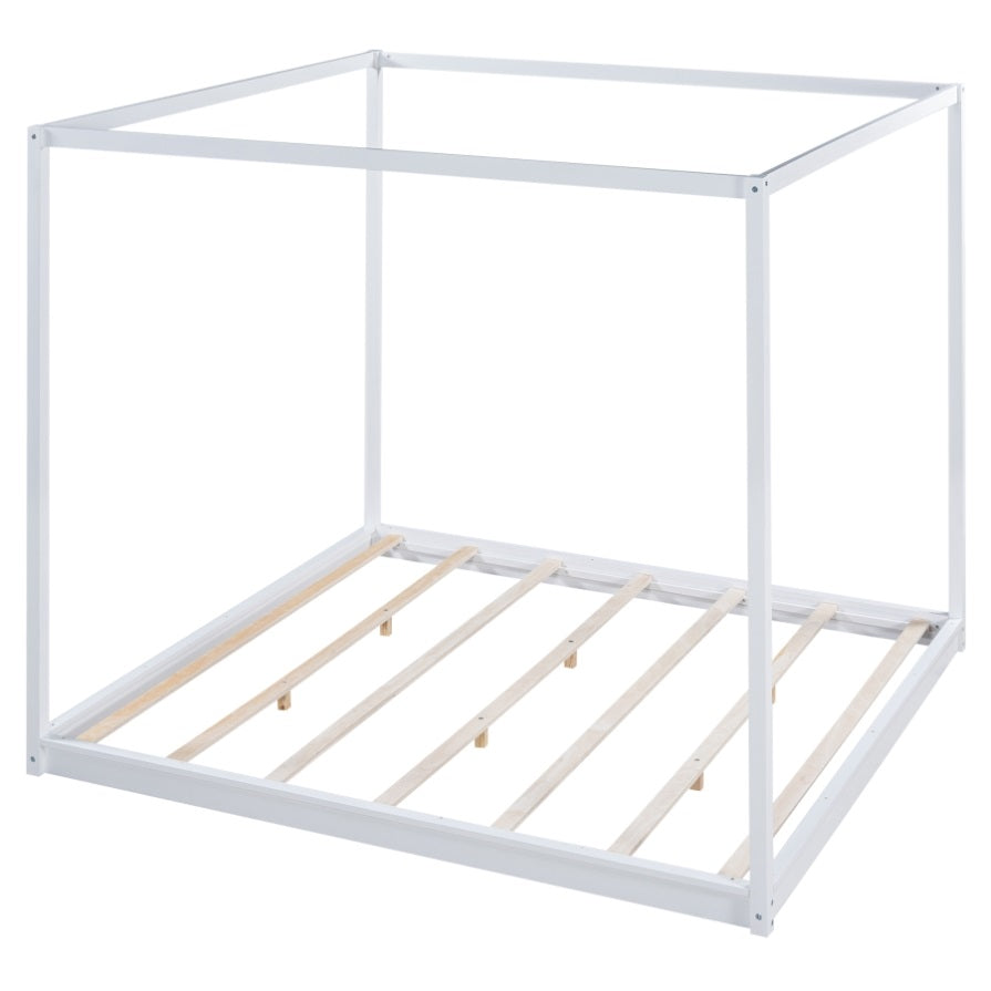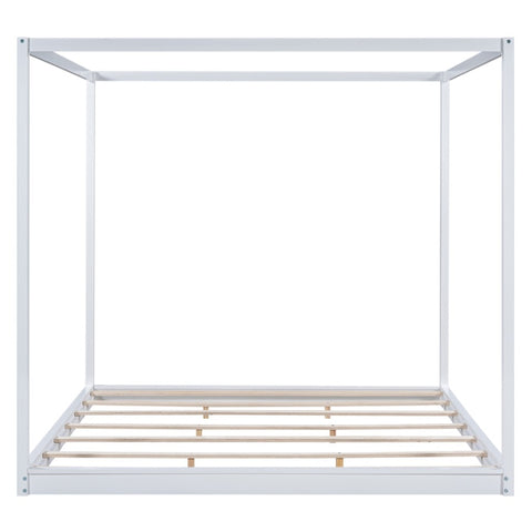 King Size Canopy Platform Bed with Support Legs,White WF309290AAK