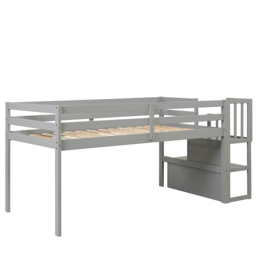 [Storage Space] The loft bed is equipped with 2 storage steps of different sizes, this design fully explored the options to optimize space-saving. Allowing toys and books to be kept away neatly when they are not in use, keeping the bedroom of your child clean and tidy.