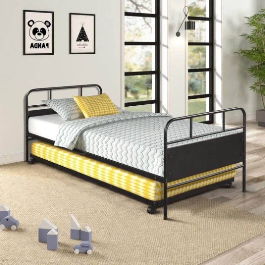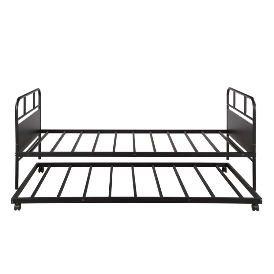 Metal Daybed Platform Bed Frame with Trundle Built-in Casters, Twin MF189577AAB