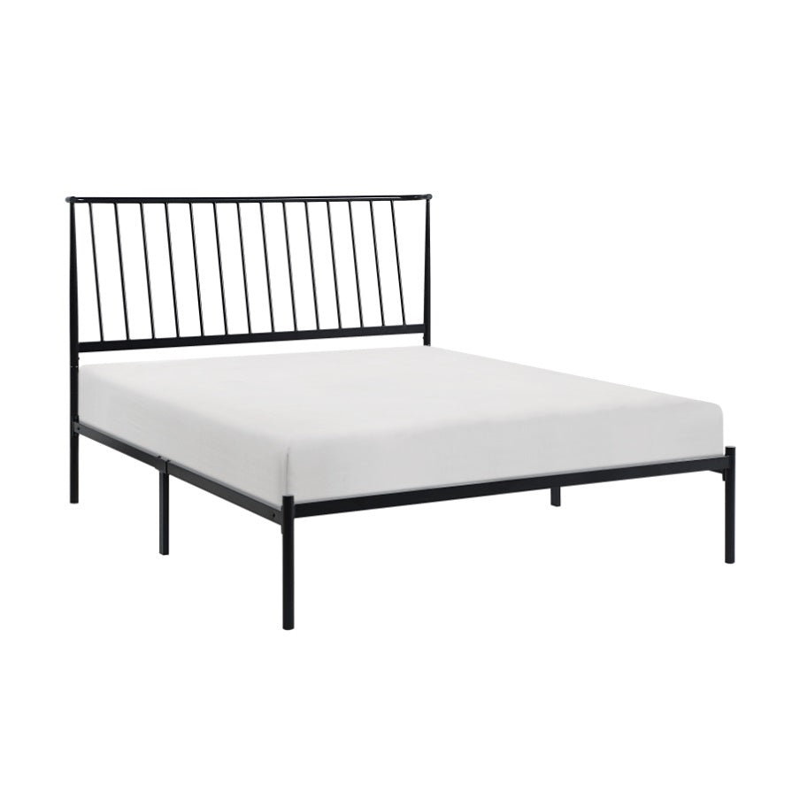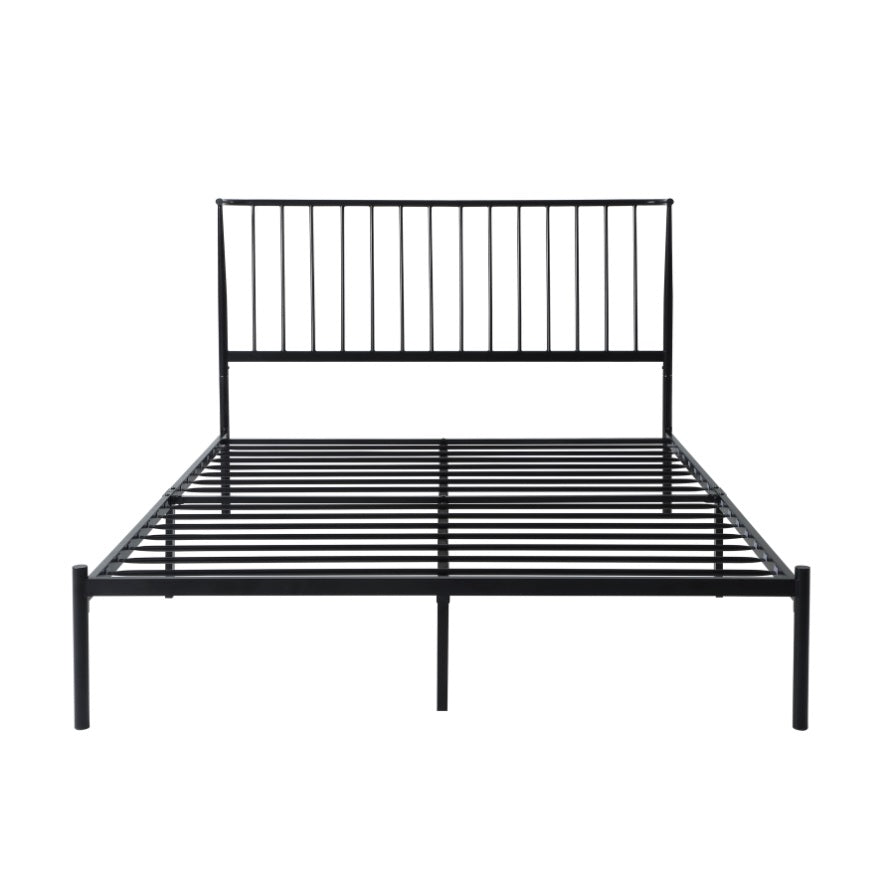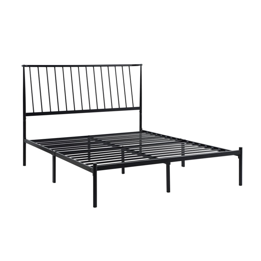 Metal Frame Queen Platform Bed Black Finish Angle Headboard Bedroom Furniture 1pc B011P261195