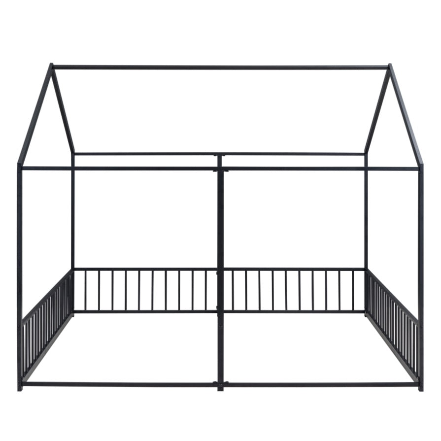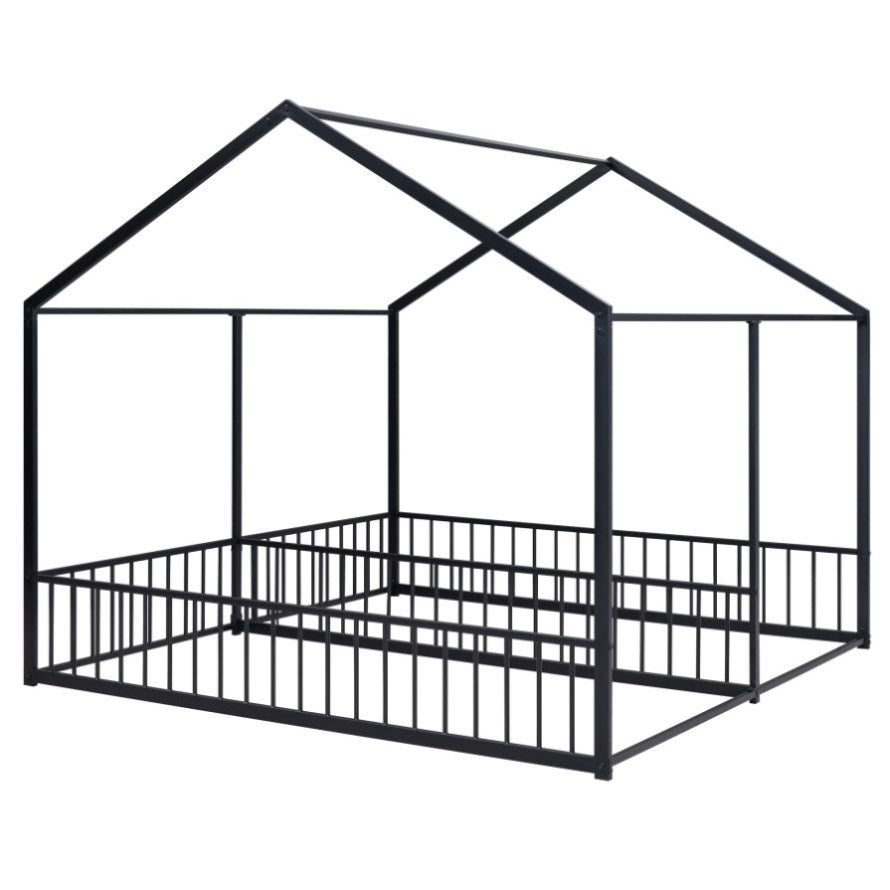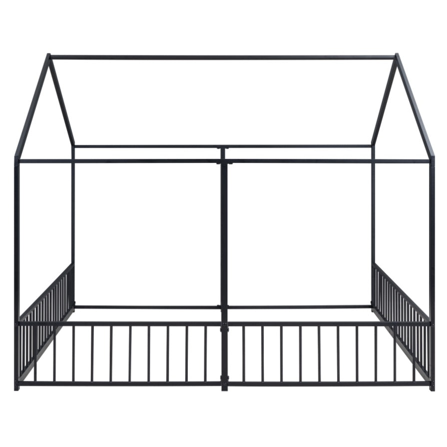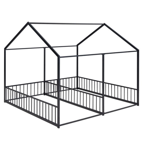 Metal Twin Size House Platform Beds, Two Shared Beds, Black