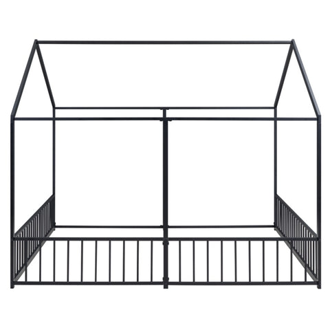 Metal Twin Size House Platform Beds, Two Shared Beds, Black MF307505AAB