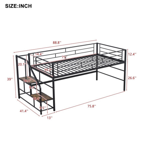 Mid Loft Bed with Storage stairs, Twin, Black MF323325AAB