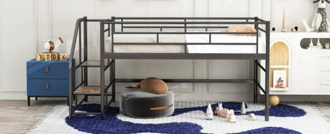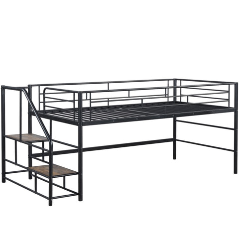 Mid Loft Bed with Storage stairs, Twin, Black
