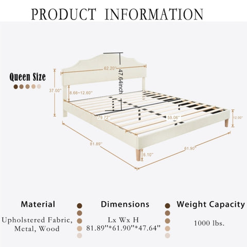 Queen Size Bed Frame Upholstered Platform Bed with Adjustable Headboard,Linen Fabric Padded,Modern W1716P280054