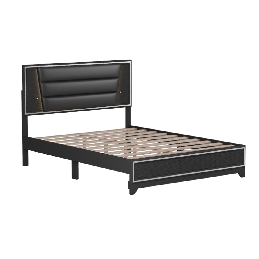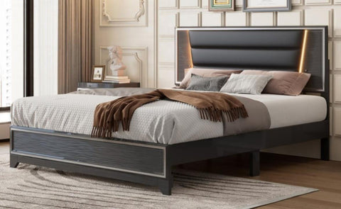 Queen Size PU Upholstered Bed, Headboard with LED Light Strips and Sparkling Shiny Decoration, No WF531199AAB