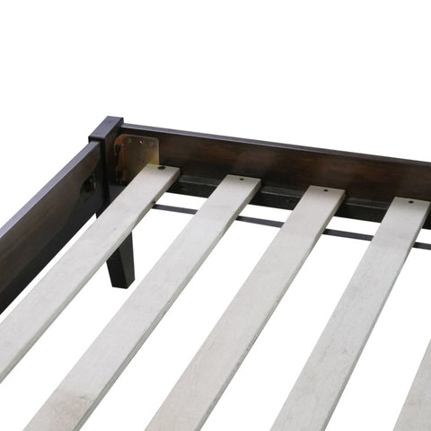 Queen Size Rubber Wooden, Solid Wooden Bed with Rattan Headboard, Enhanced by Support Feet,Espresso W504P252031
