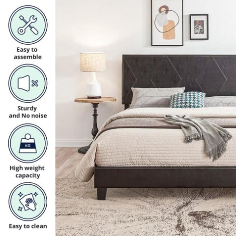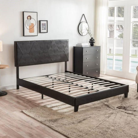 Queen Size Upholstered Platform Bed Frame ,Wood Slat Support, Easy Assembly,Black, PU W2297P284541
